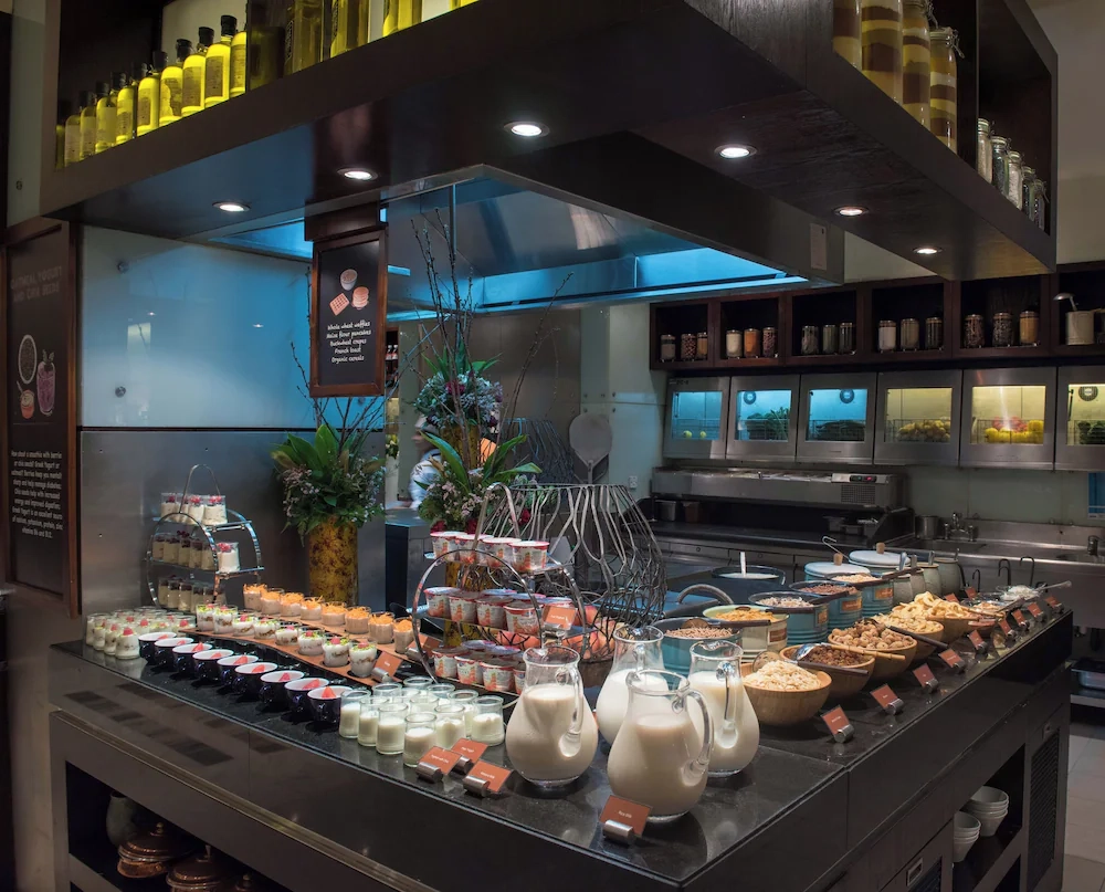 조식 [ LA RIVIERE ] 메인 레스토랑에서 라이브 쿠킹 스테이션을 포함한 뷔페식으로 제공