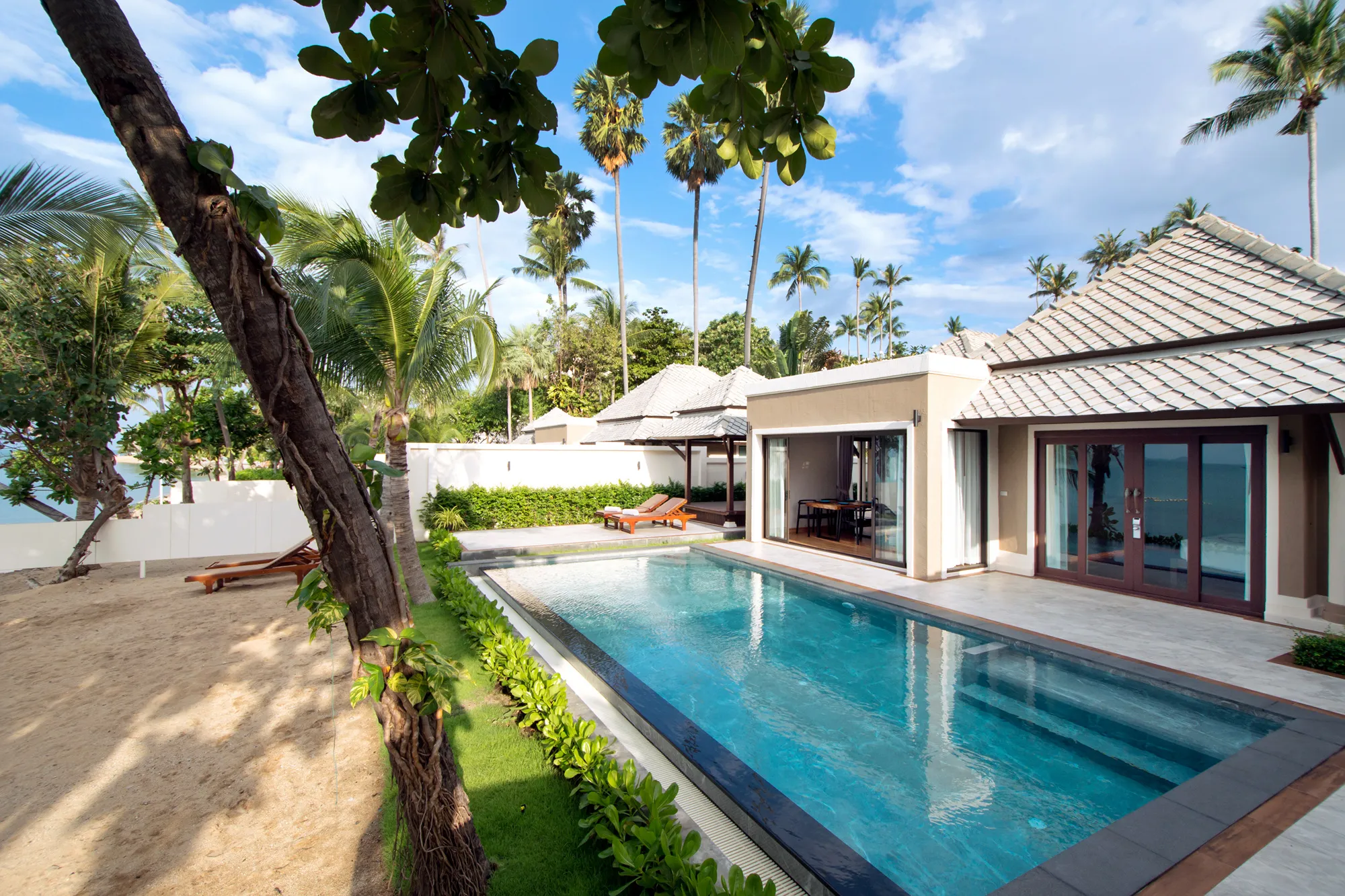 이동에 버리는 시간이 없고, 아름다운 바다 빛깔, 고운 화이트 비치에 5성급 이상의 럭셔리풀빌라는 덤!