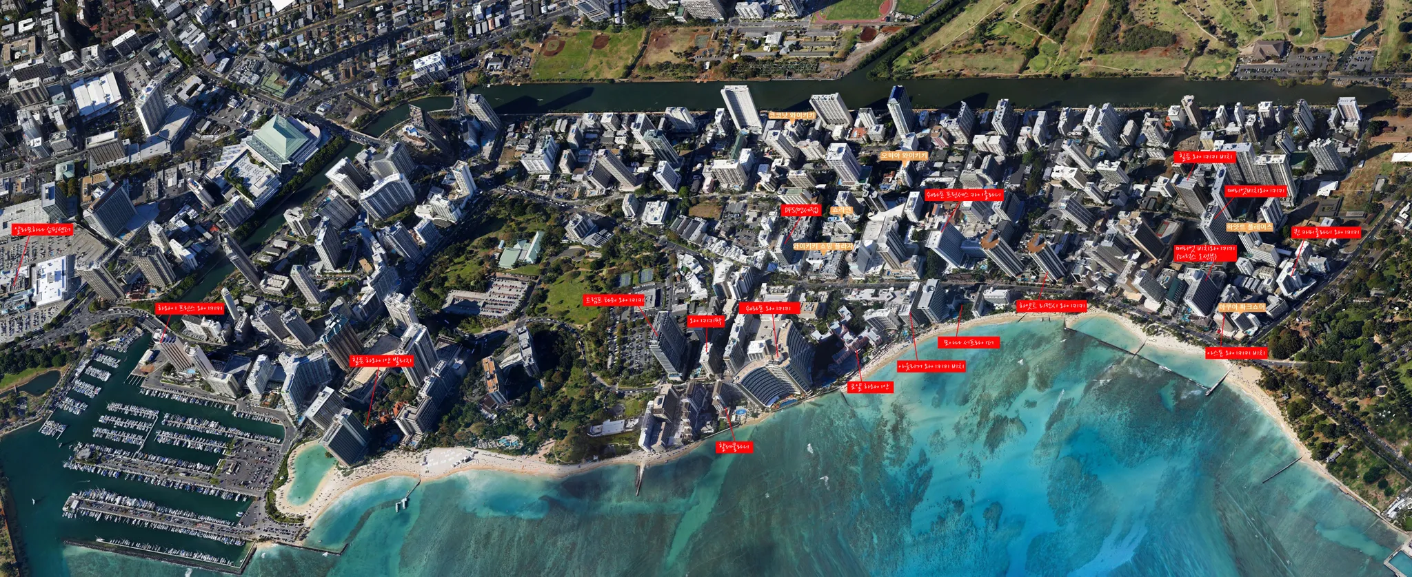 와이키키 비치가 퍼블릭(공용) 비치고, 숙박하실수 있는 숙소가 일반 호텔인데,