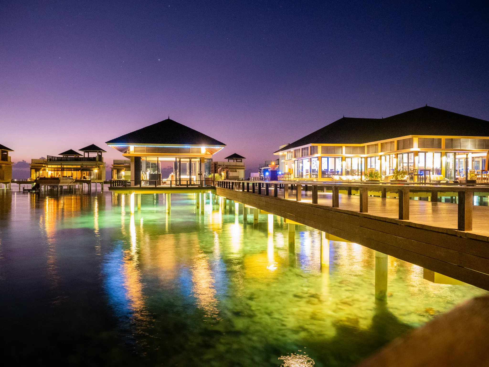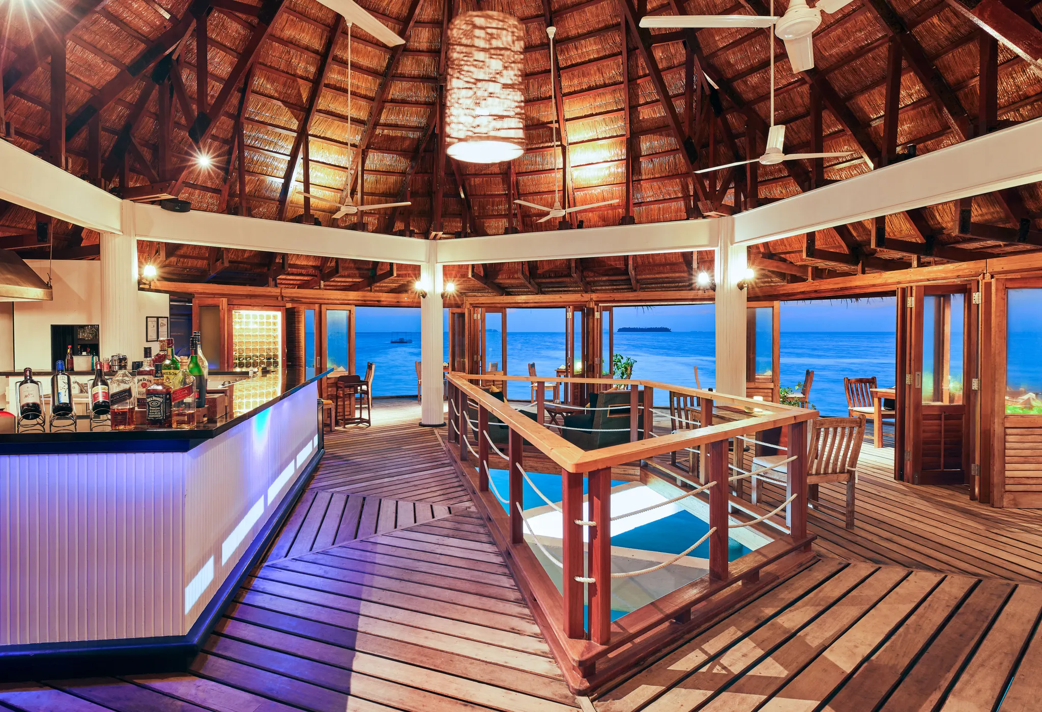 비치 빌라와 “인오션빌라” 라 불리우는 수상 빌라로 구성 되어 있으며, 3개의 레스토랑을 운영하고 있습니다.