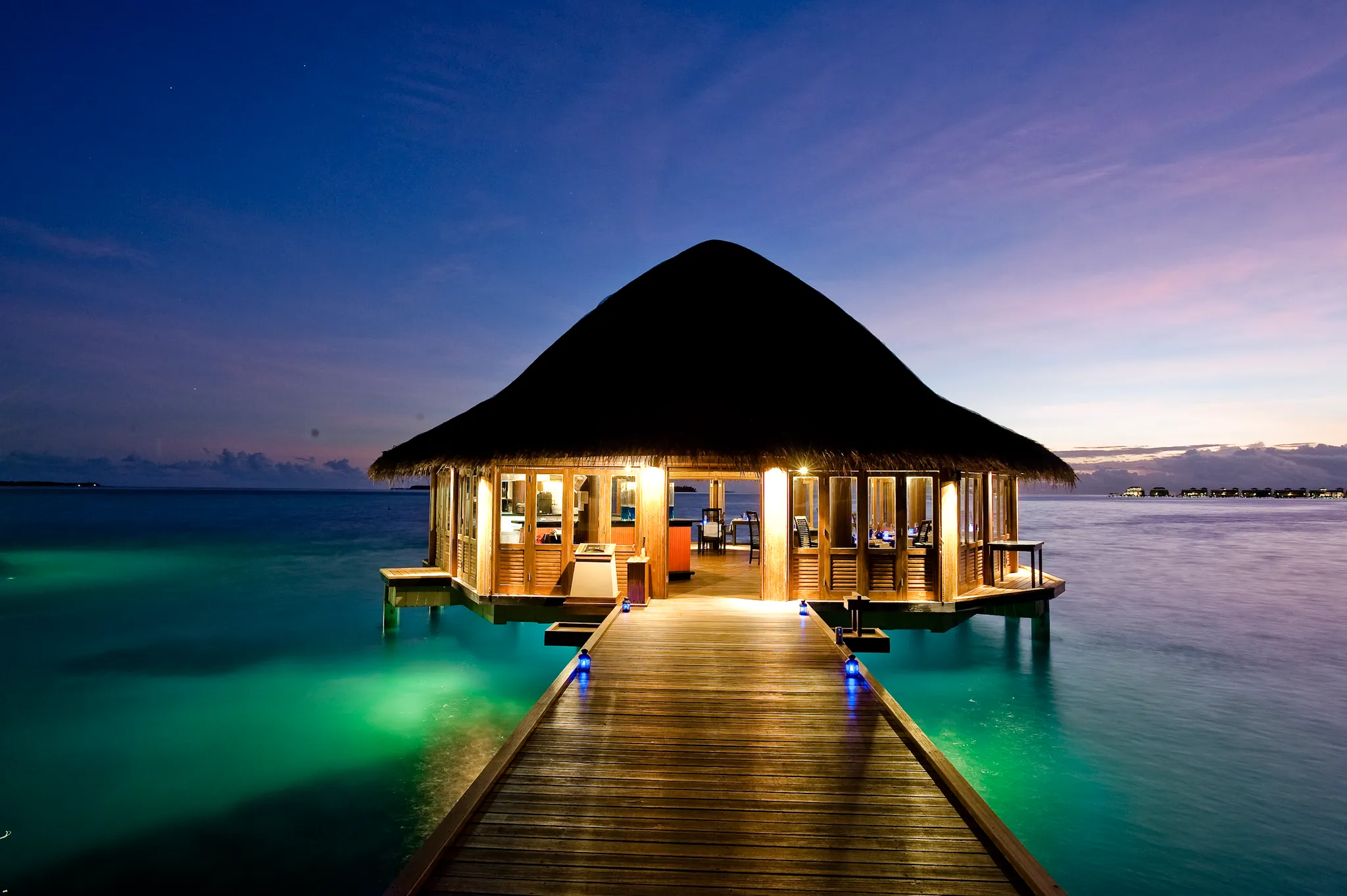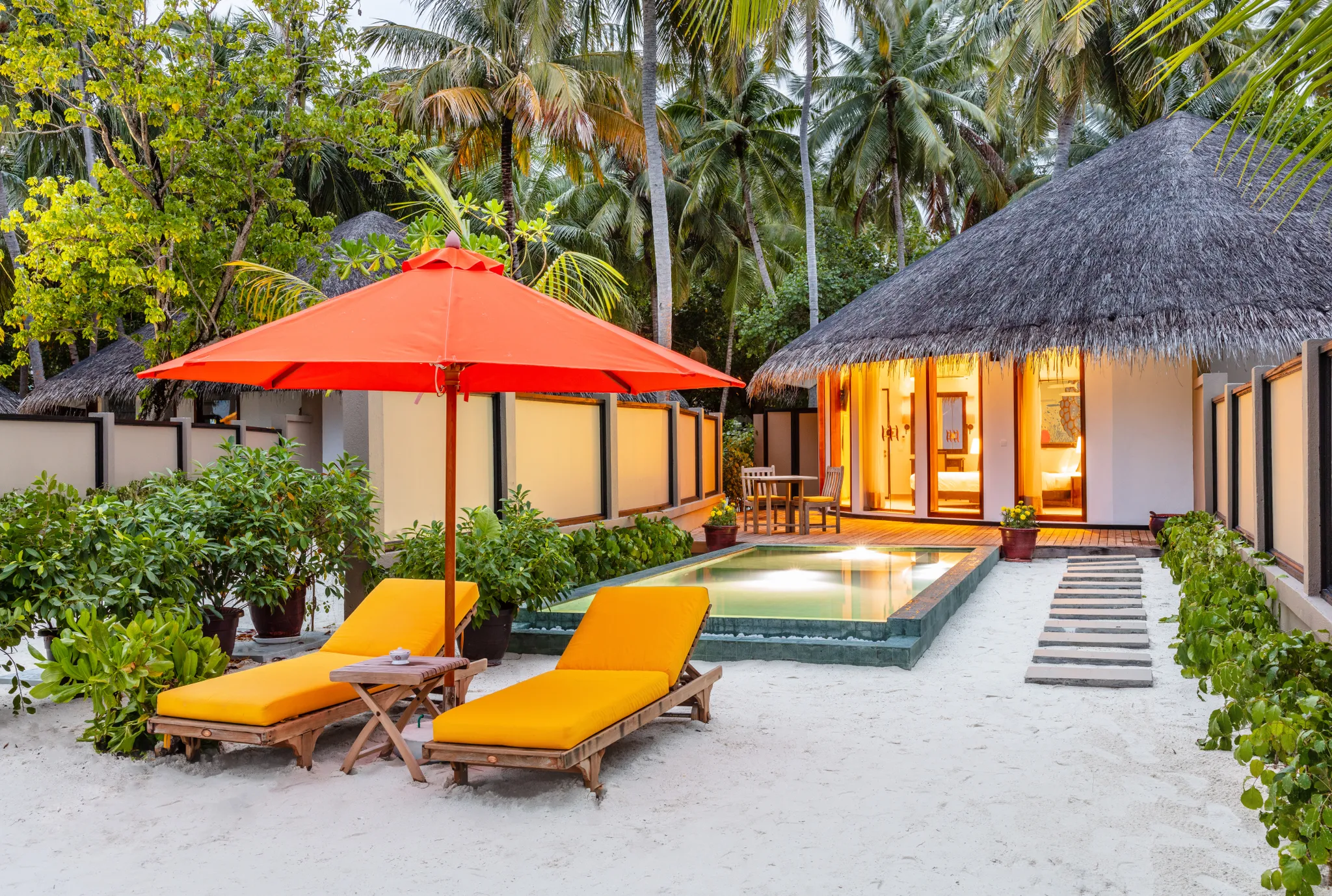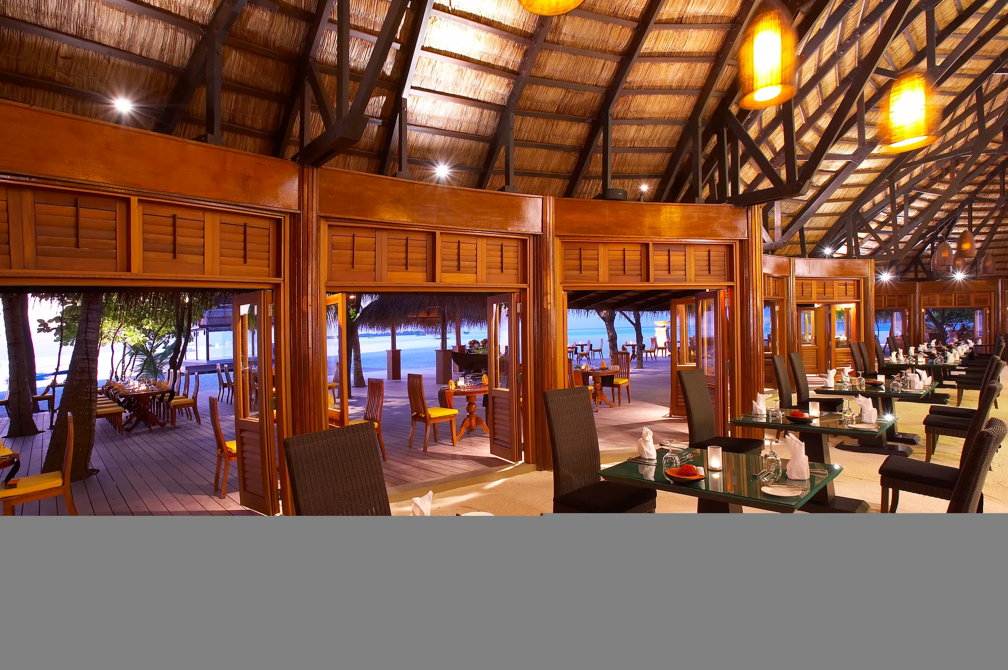비치 빌라와 “인오션빌라” 라 불리우는 수상 빌라로 구성 되어 있으며, 3개의 레스토랑을 운영하고 있습니다.