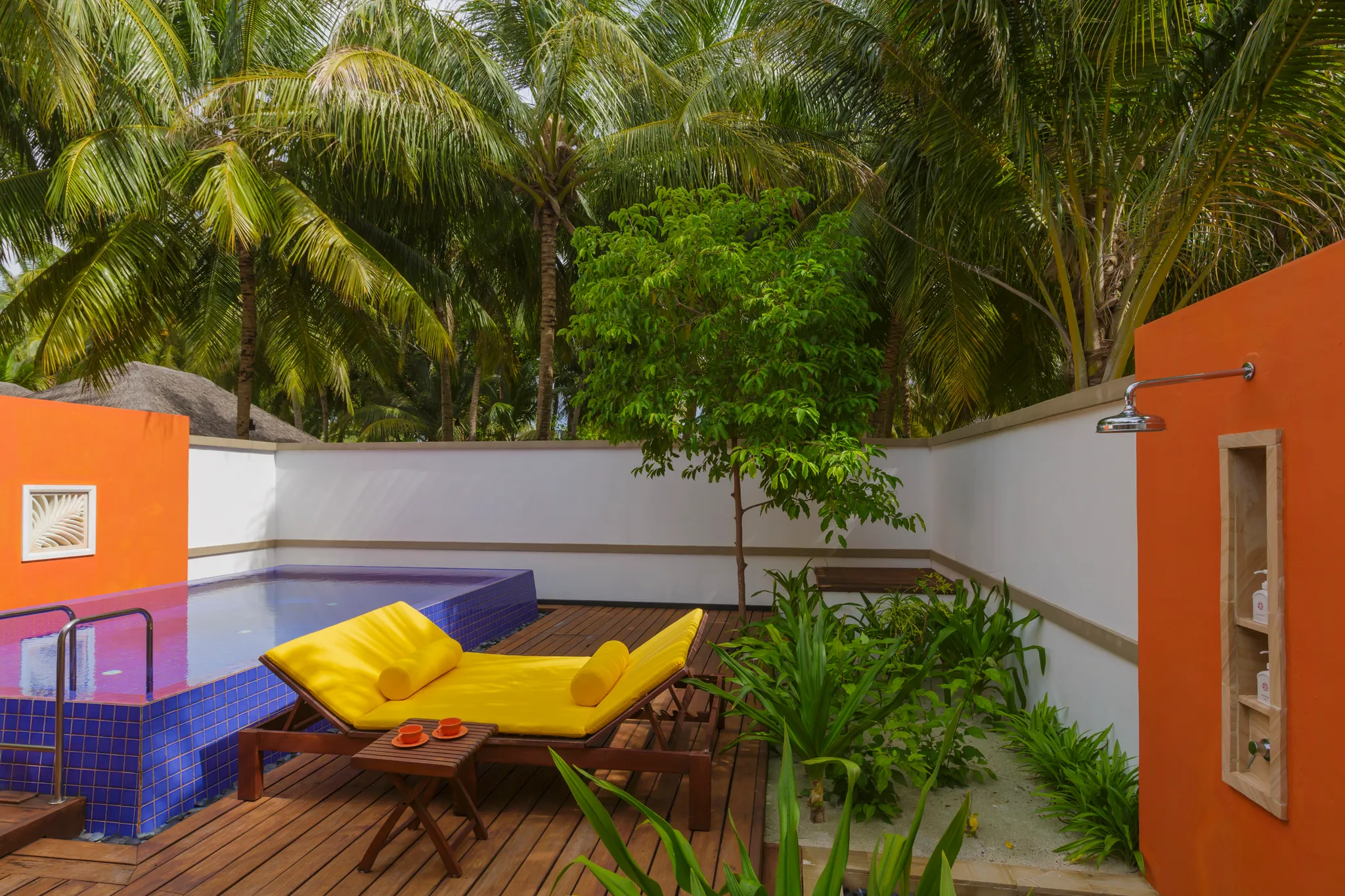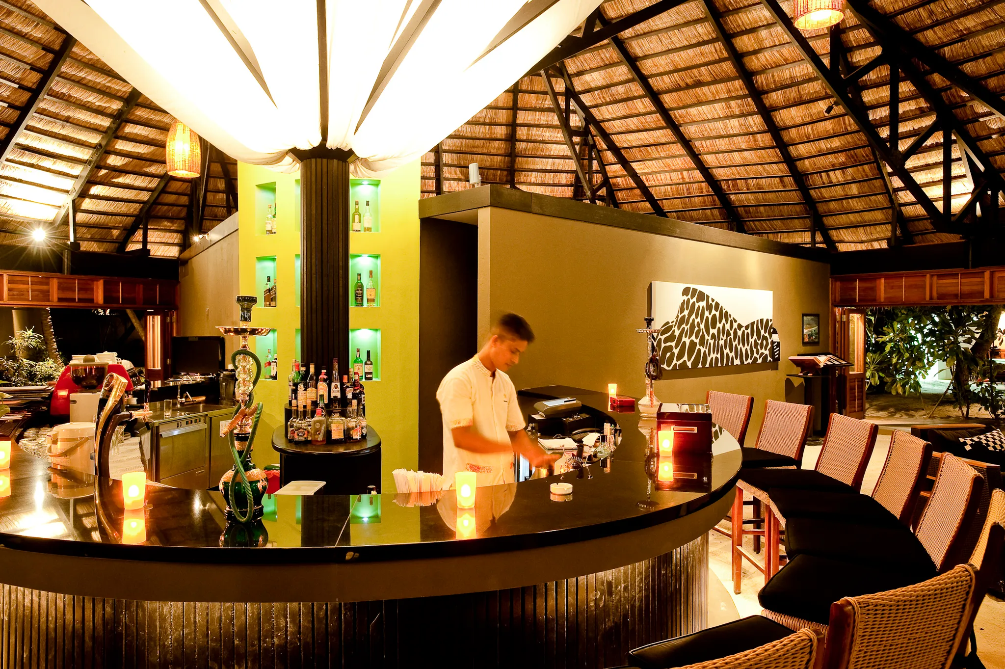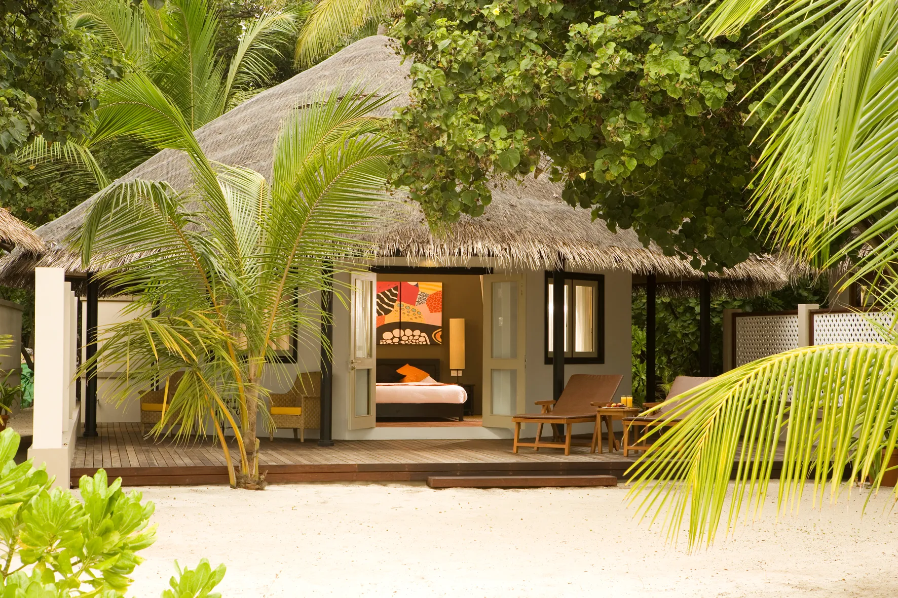 비치 빌라와 “인오션빌라” 라 불리우는 수상 빌라로 구성 되어 있으며, 3개의 레스토랑을 운영하고 있습니다.