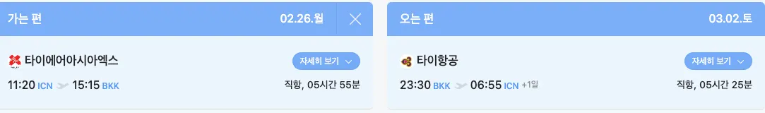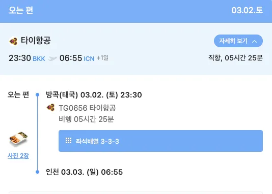 귀국시 : 타이항공 (방콕-인천)