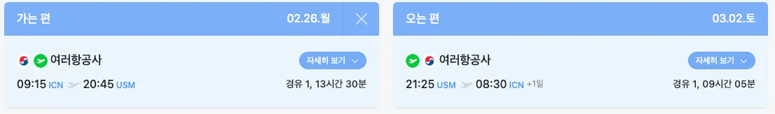 1인 항공비용 1,075,592 원 ~ 1,263,700 원