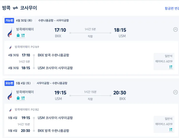별도 발권할경우, 귀국시 코사무이 - 방콕 도착후 짐을 한번 찾앗다가. 다시 붙여 줘야 한다는 일이 잇어요.