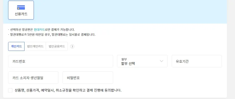 카드정보를 넣고 발권하게 되며