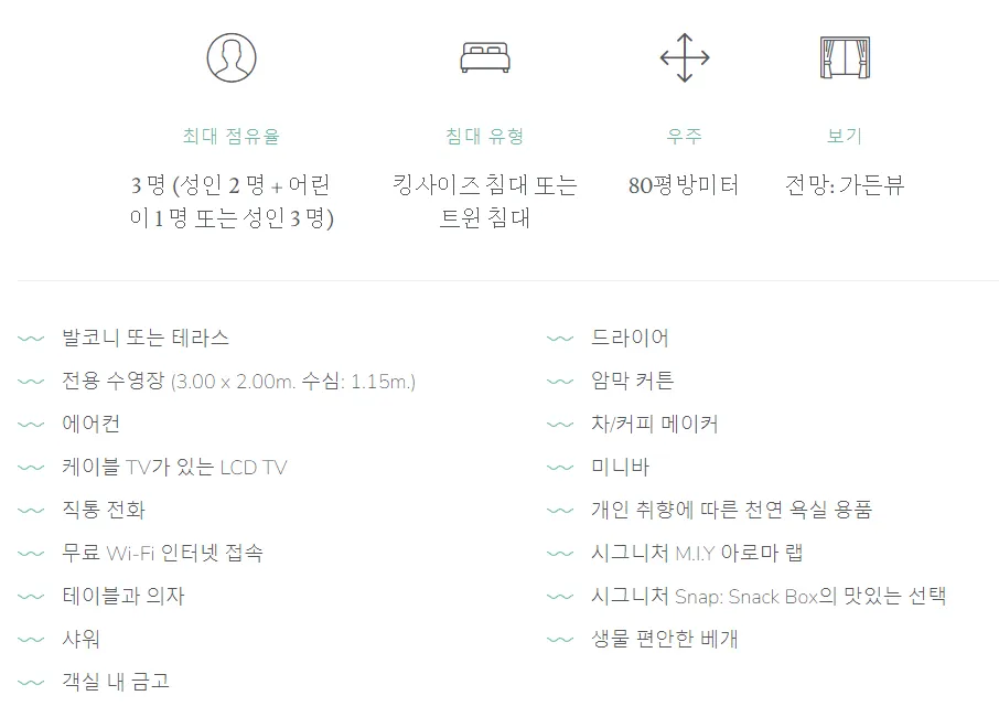 바다전망의 일반객실부터 프라이빗한