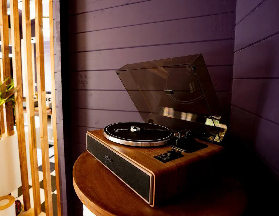 턴테이블: 달콤한 향수를 불러일으키는 빈티지 턴테이블로 좋아하는 예술가를 재발견하세요. Sobi Bar의 레코드 라이브러리에서 LP를 선택하고 선택할 수 있습니다.