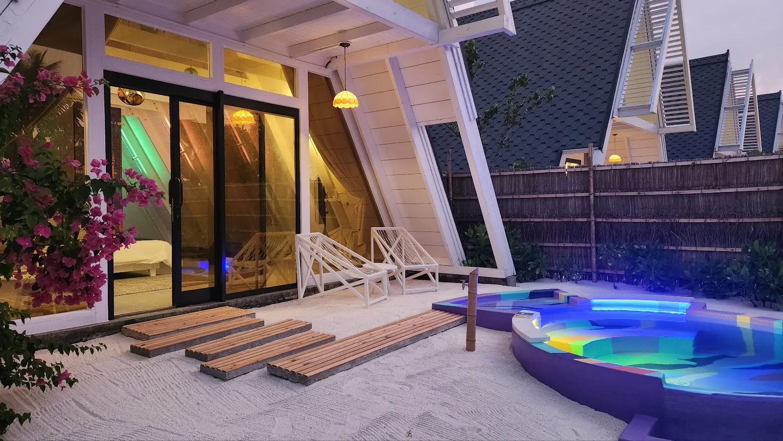 이곳은 비치빌라인데요. 수영장이 앞에 있지만. 개인 수영장이 아닌 공용수영장과 이어져 있답니다.