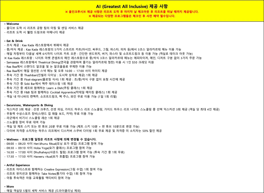 AI 올인크루시브 사항 점검해보겠습니다.