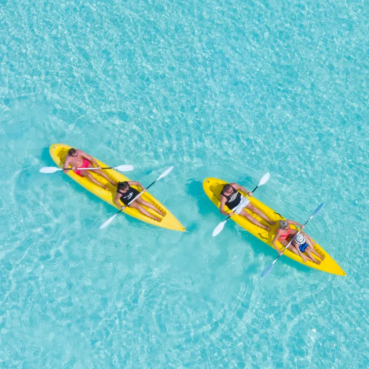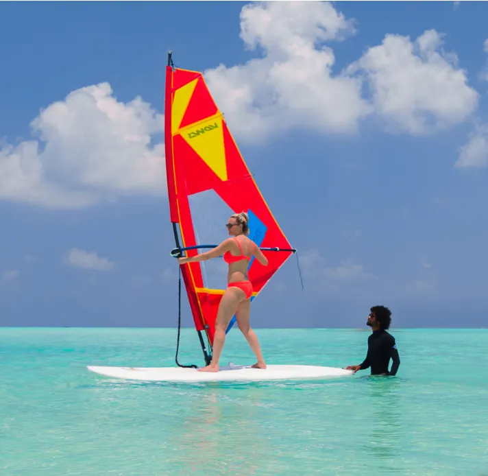 윈드서핑, 스탠드업 패들보딩(SUP), 싱글 또는 더블 카약 등 어떤 스포츠를 즐기든, 매일 1시간 동안 무료로 수상 스포츠 장비를 빌려 무제한의 즐거움을 만끽하세요.
