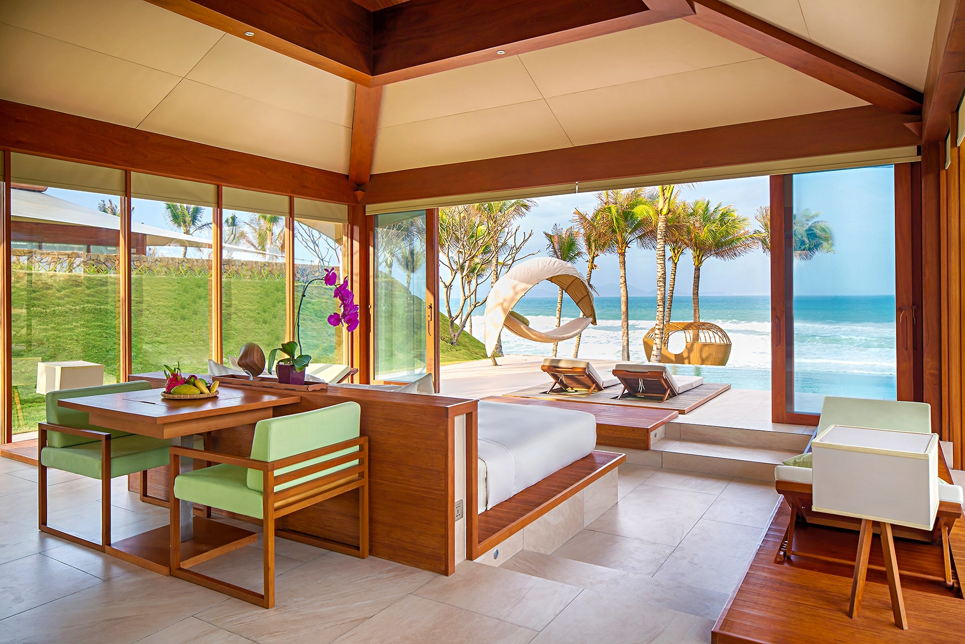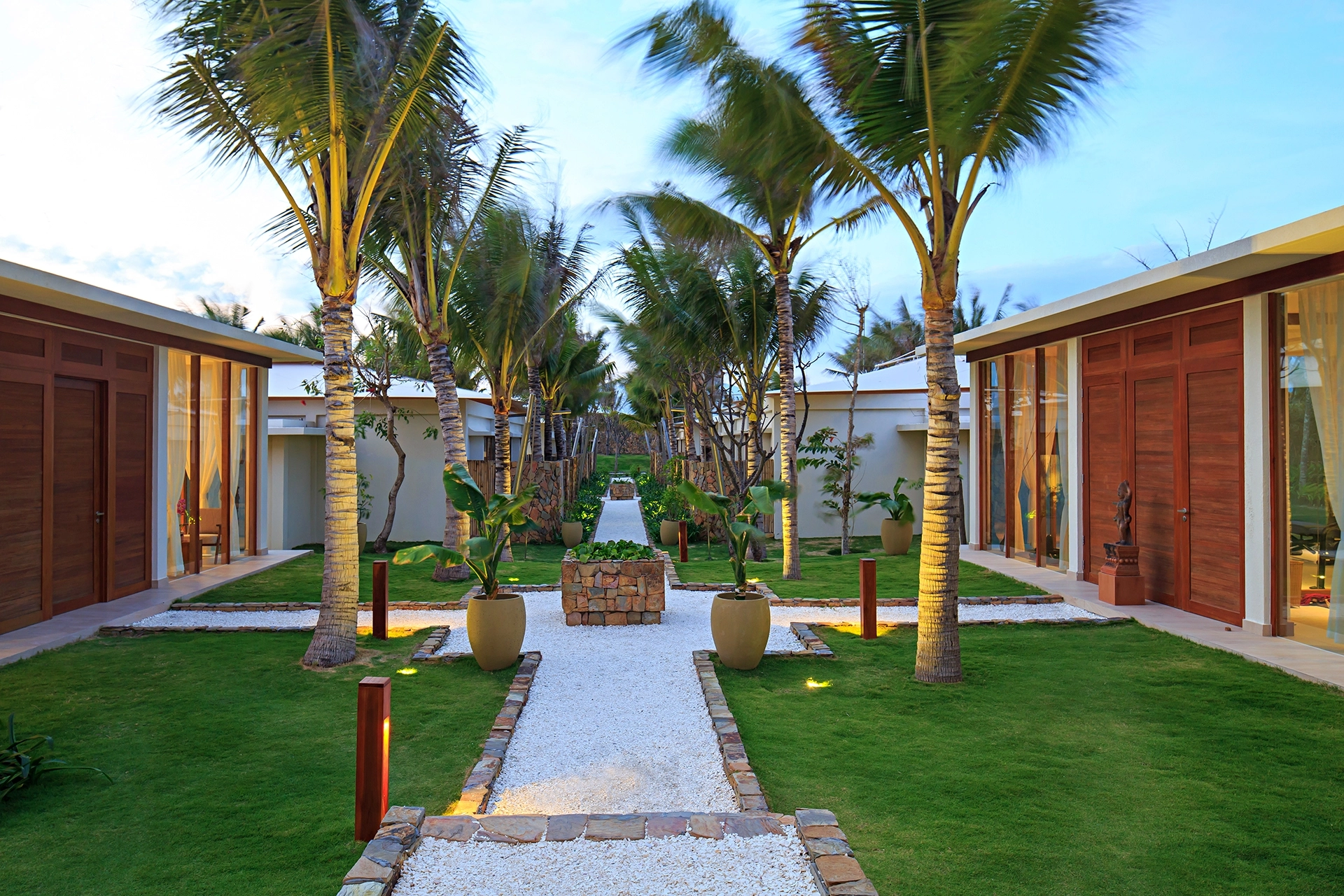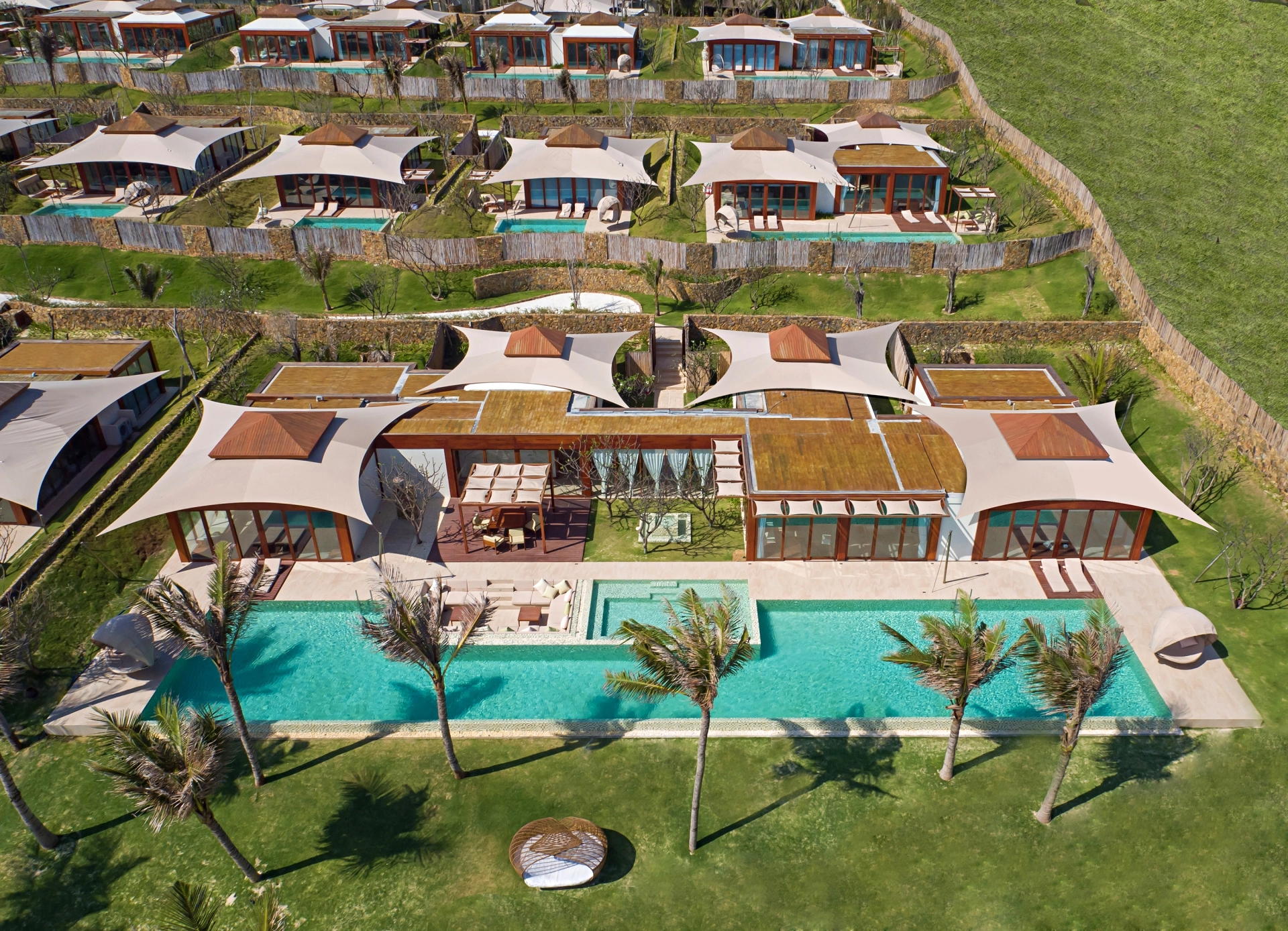 동양의 나폴리라 불리우는 베트남 최고의 휴양지인 나트랑은 베트남 중남부 동해안에 위치해 있으며, 와이키키 비치를 연상시키는 10Km에 이르는 천연의 백사장과 아름다운 에메랄드 빛 바다가 있는 완벽한 휴양지 중 한 곳입니다. 과거에는 나트랑 시티센터(나짱센터)인근으로 다양한 호텔들이 운영중이었고, 리조트들은 시내와 조금 떨어져 있거나 스피드 보트를 타고 들어가는 섬에 위치한 경우들이 많았습니다. 하지만 깜란 국제공항에 새롭게 오픈하면서 조성이 되고 있는 Cam Hải Đông 지역은 나트랑에서도 가장 아름다운 바다가 있는 곳으로 최근 이곳에 휴양형 리조트들이 계속해서 오픈을 하고 있습니다. 세레니티 그룹의 <퓨젼 리조트 깜란>은 스파인클루시브컨셉 풀빌라 리조트를 지향하고 있으며, 모던한 스타일의 비치 리조트로 커플이나 가족들이 한적하여 여행을 즐기기 용이합니다. 최대 4베드룸 풀빌라까지 구성하고 있고, 성인을 기준으로 1일 2개의 스파 프로그램이 포함되어 있는게 특징입니다.