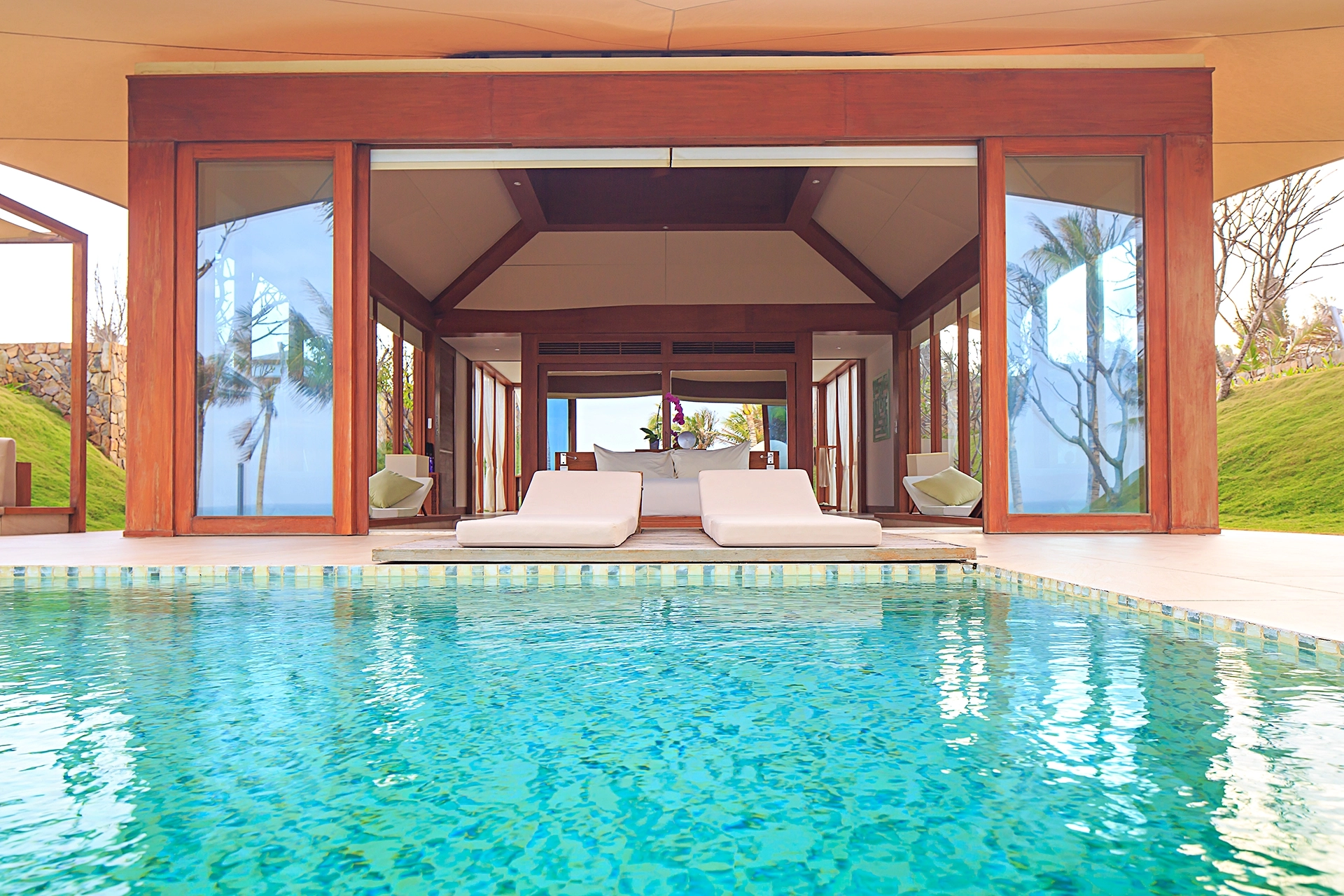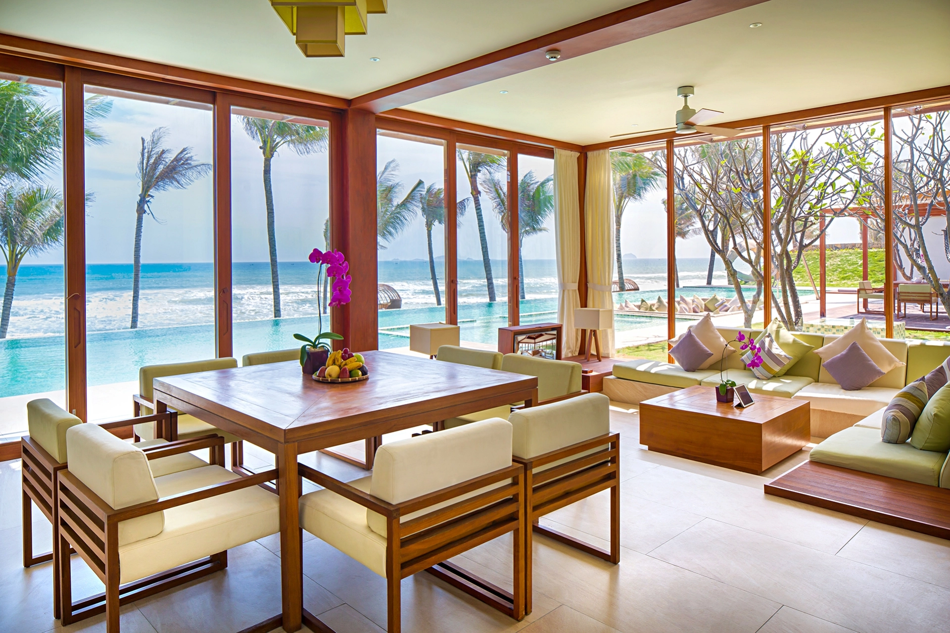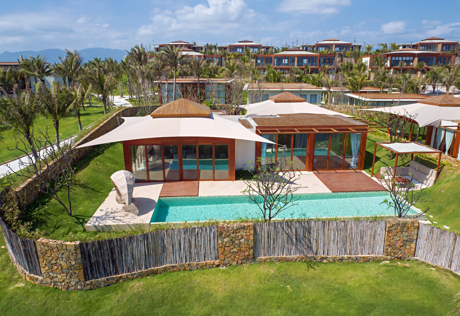 동양의 나폴리라 불리우는 베트남 최고의 휴양지인 나트랑은 베트남 중남부 동해안에 위치해 있으며, 와이키키 비치를 연상시키는 10Km에 이르는 천연의 백사장과 아름다운 에메랄드 빛 바다가 있는 완벽한 휴양지 중 한 곳입니다. 과거에는 나트랑 시티센터(나짱센터)인근으로 다양한 호텔들이 운영중이었고, 리조트들은 시내와 조금 떨어져 있거나 스피드 보트를 타고 들어가는 섬에 위치한 경우들이 많았습니다. 하지만 깜란 국제공항에 새롭게 오픈하면서 조성이 되고 있는 Cam Hải Đông 지역은 나트랑에서도 가장 아름다운 바다가 있는 곳으로 최근 이곳에 휴양형 리조트들이 계속해서 오픈을 하고 있습니다. 세레니티 그룹의 <퓨젼 리조트 깜란>은 스파인클루시브컨셉 풀빌라 리조트를 지향하고 있으며, 모던한 스타일의 비치 리조트로 커플이나 가족들이 한적하여 여행을 즐기기 용이합니다. 최대 4베드룸 풀빌라까지 구성하고 있고, 성인을 기준으로 1일 2개의 스파 프로그램이 포함되어 있는게 특징입니다.