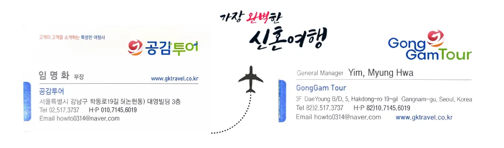 웨딩북에서 허니문 담당하고 있는 공감투어 임명화부장입니다!