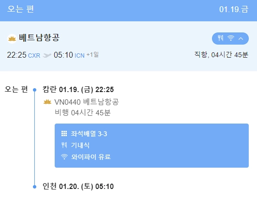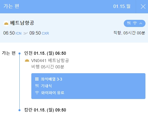 1안 ) 1월 15일 출발 기준 베트남항공 스케쥴 /1인 항공료 674,000원