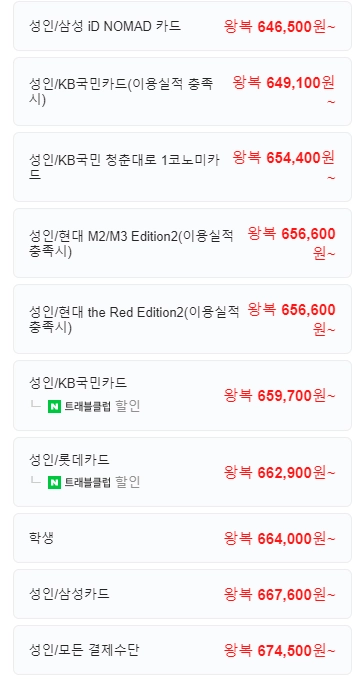 여행일정별 예상 비용 ( 견적시 기준 )