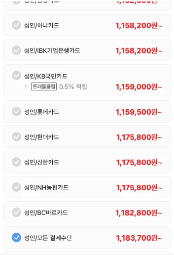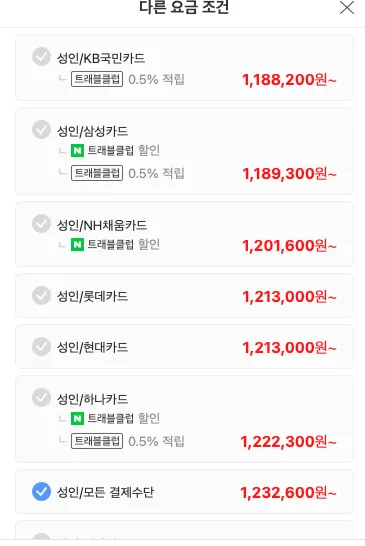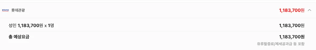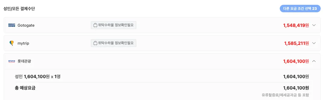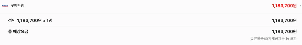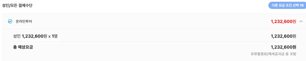 3/17 기준 실시간 요금 1,604,100 원 (일반성인기준)