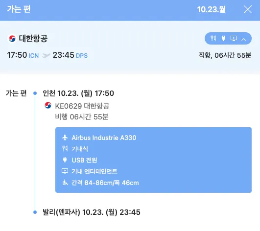 2 ) 23년 10월23일 - 5박7일 항공요금 4박6일 과 동일