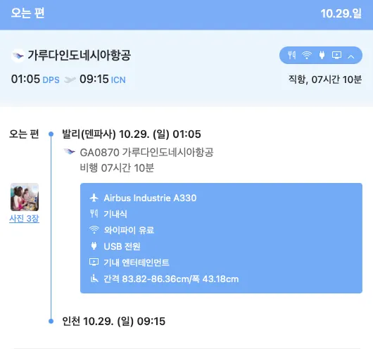 오전 출발 가루다 항공 5박7일 1,232,600 원 기준