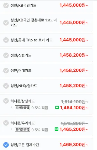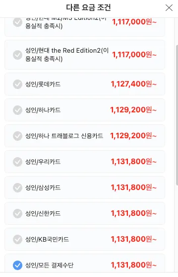 성인 1인 항공요금입니다. 발권시 카드사용에 따라 청구할인이 되는 부분이 위에 카드사에 따라 나눠져 있는요금입니다. 발권은 제3자 발권은 안되구요. 본인 과 배우자 이렇게만 됩니다. 가족도 가능하나 가족관계증명서가 필요합니다.