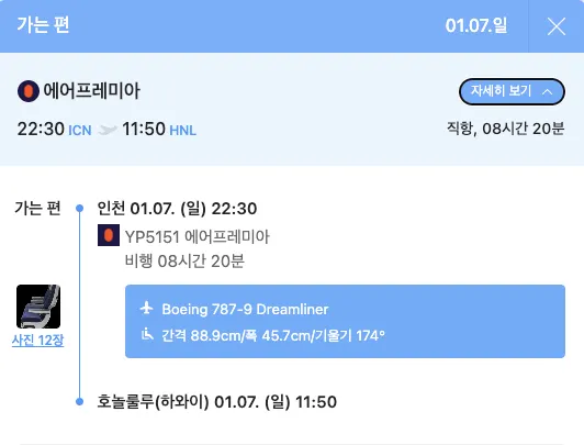 인천국제공항 출발(공항출발시간 3시간 전에 인천공항도착해주세요.) / 호놀룰루 향발
