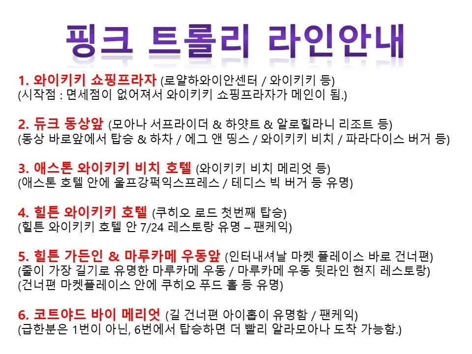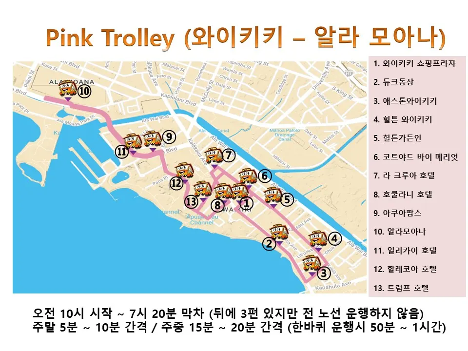 Waikiki Pink-Line Trolley 노선안내