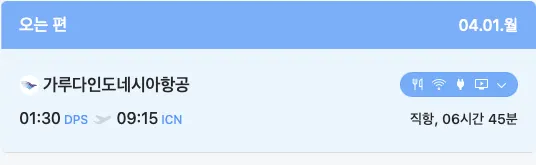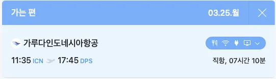 항공은 오전직항 가루다항공으로 잡아두었습니다