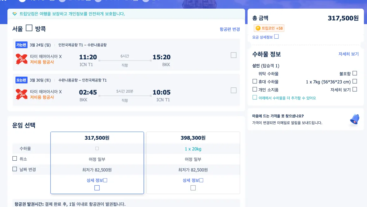 항공 발권시 트립닷컴은 추가요금을 추가할래? 이런식으로 서비스 옵션 추가가 많은 편입니다.