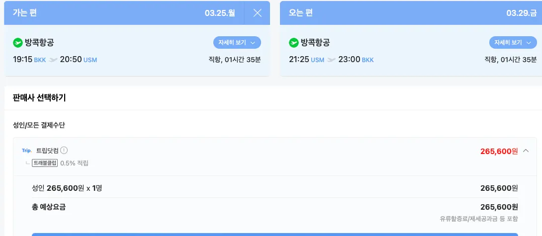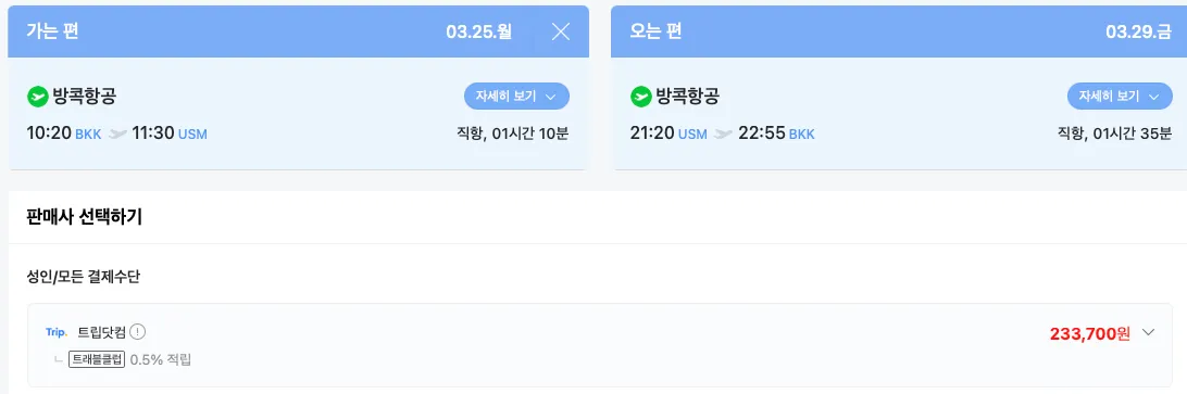 1박하시고 방콕에서 사무이 넘어가시니까. 이시간대가 될것 같은데. 요금으로 보니. 이 시간대가 가장 좋습니다.