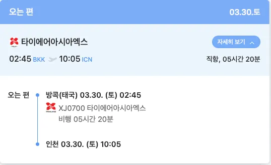 타이에어아시아 의 경우 리턴 귀국시 02시 45분 입니다. 참고바랍니다.