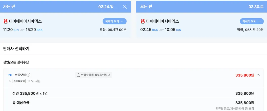 와웃. 다른사람 항공료의 반값입니다. 그래도 타이 에어아시아 항공을 선택하셔서 놀랐네요. 보통 모르는 항공사는 다들 패스 하는데.