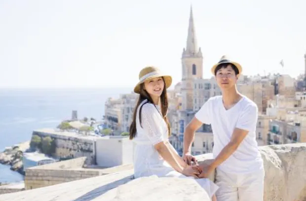 유네스코에 등재된 도시 발레타에서 전문 사진 작가와 허니문 스냅 촬영