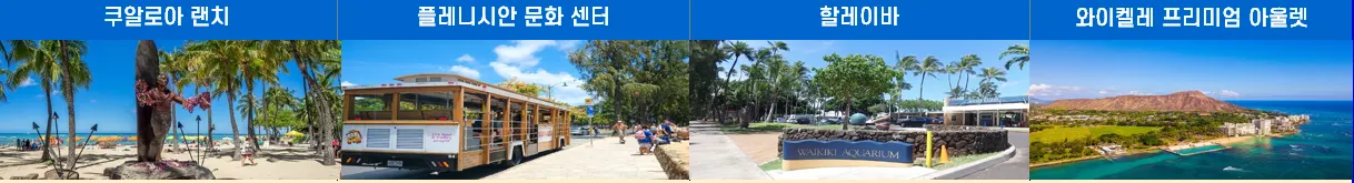 코트야드 메리어트 -> 호텔 라크루아 -> 호쿨라니 호텔 -> 아쿠아 팜스 와이키키 -> 알라 모아나 센터 -헤일코아(힐튼 하와이안)