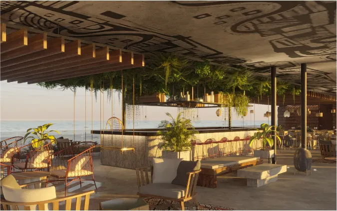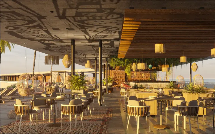 테라스와 바가 있는 야외 라운지 공간