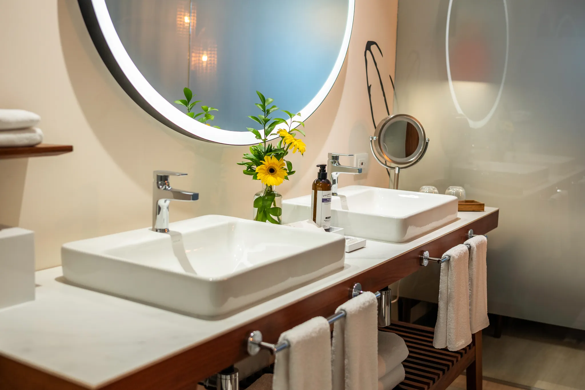 더블 세면대를 갖춘 욕실