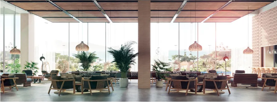 약 90M의칸쿤에서 가장 긴 옥상수영장을 자랑하며 아름다운 전망을 제공하는 골프장으로 둘러싸여 독특