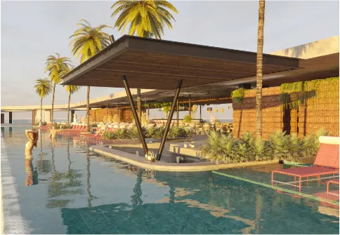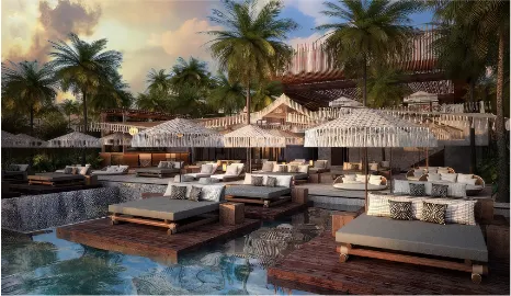 투숙객들을 위한 부대시설로 비치클럽과 2개의 메인 수영장과 1개의 루프탑 수영장 그리고