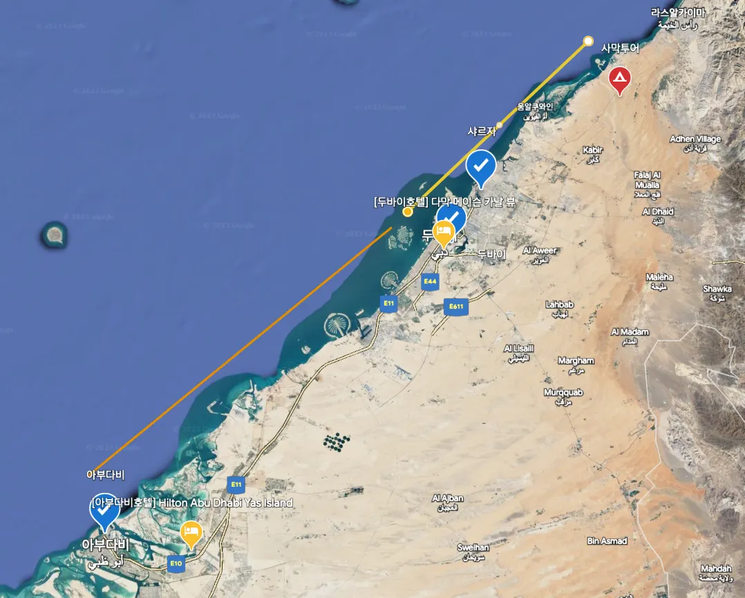 아부다비, 아부다비호텔 힐튼 아부다비야스아일랜드, 두바이 다막메이슨카날뷰 호텔, 두바이, 사막 투어 진행지