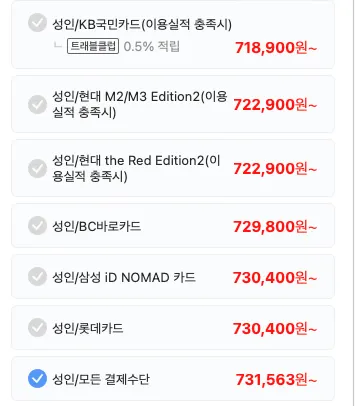 카드사 청구할인을 제외하더라도 731,563+198,000 = 926,163