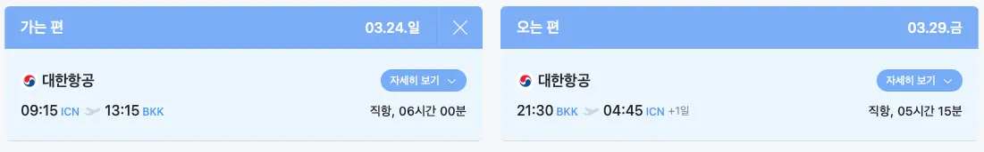 방콕 09:40 - 인천 17:20