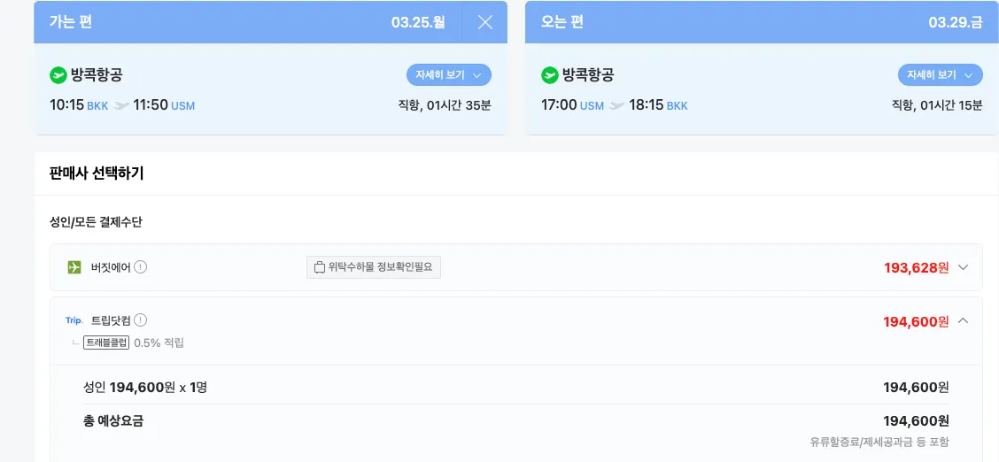 아래 버짓에어는 발권처에서 빼겠습니다. 저기는 수하물 추가해야 할겁니다. 트립닷컴은 수하물 포함이고.