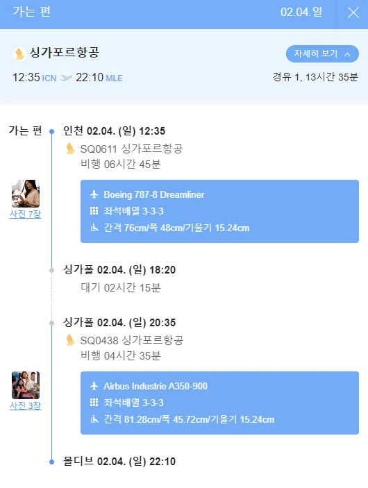 2월 4일 말레1박+몰디브4박은…항공이 120만원대/ 2월 3일 자정출발편은 오전도착으로 100만원대