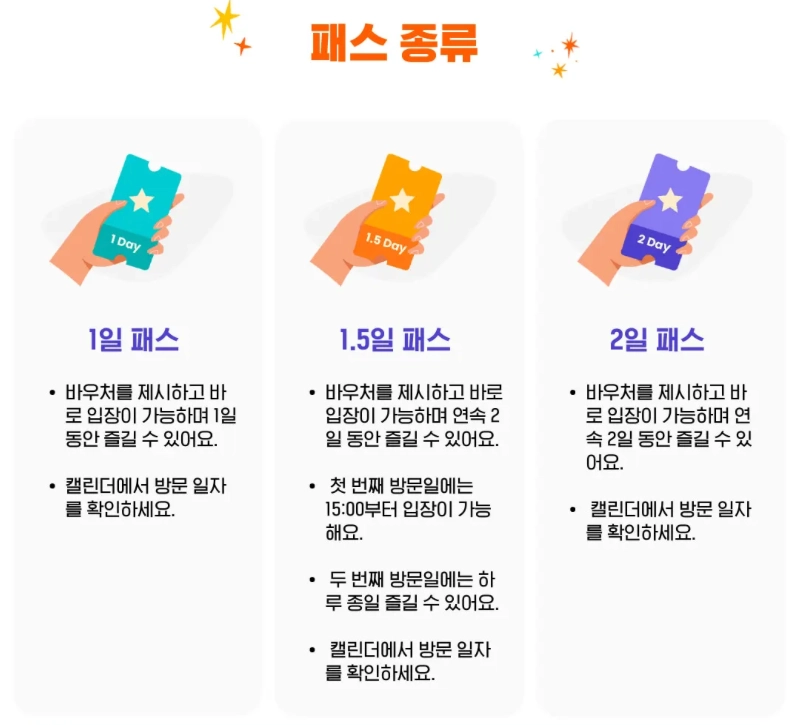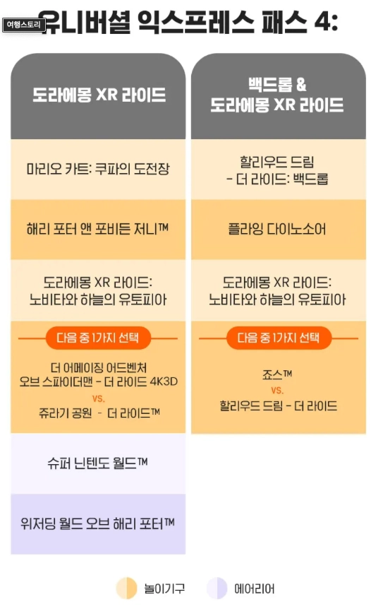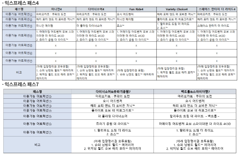 패스별 이용가능 어트랙션이 다릅니다.