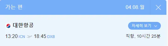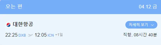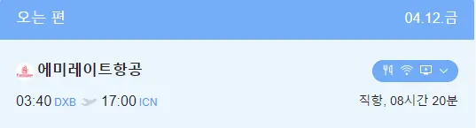 B. 4월 7일 늦은저녁 출발시-에메레이트항공 4박 6일 1인 항공료 1,235,700원