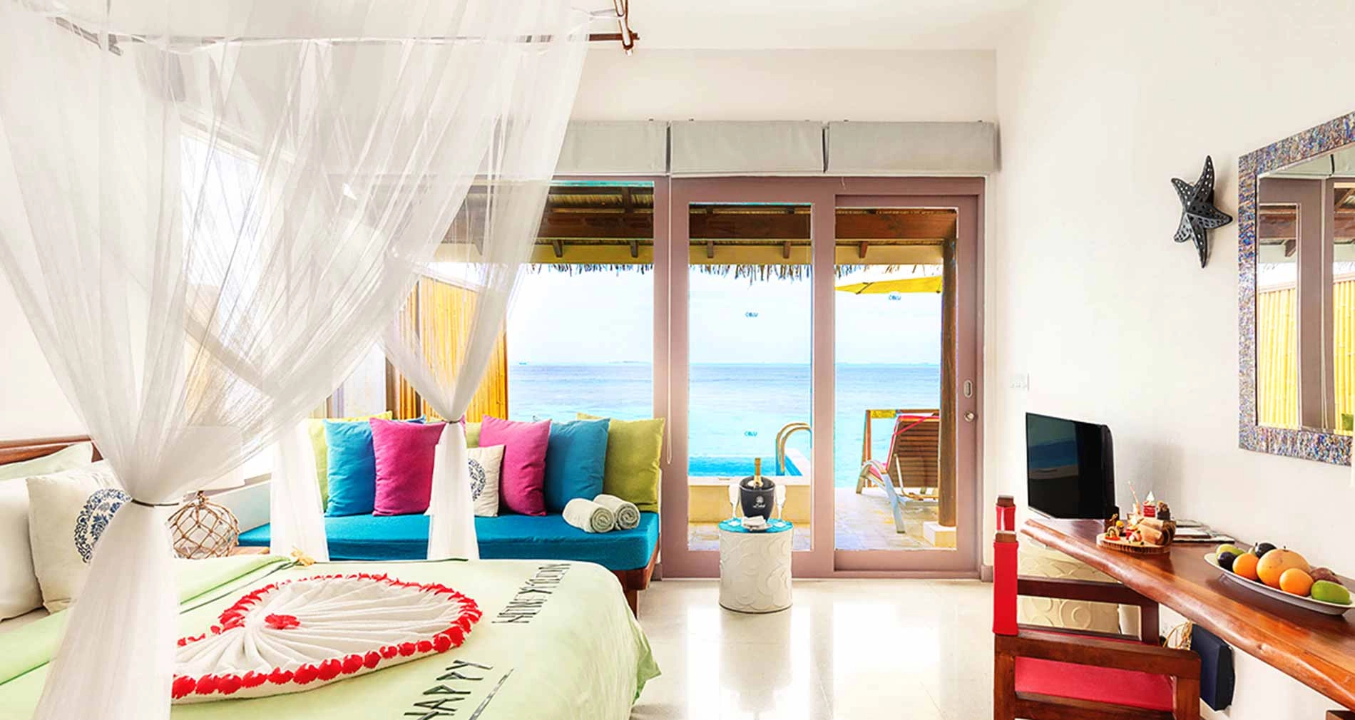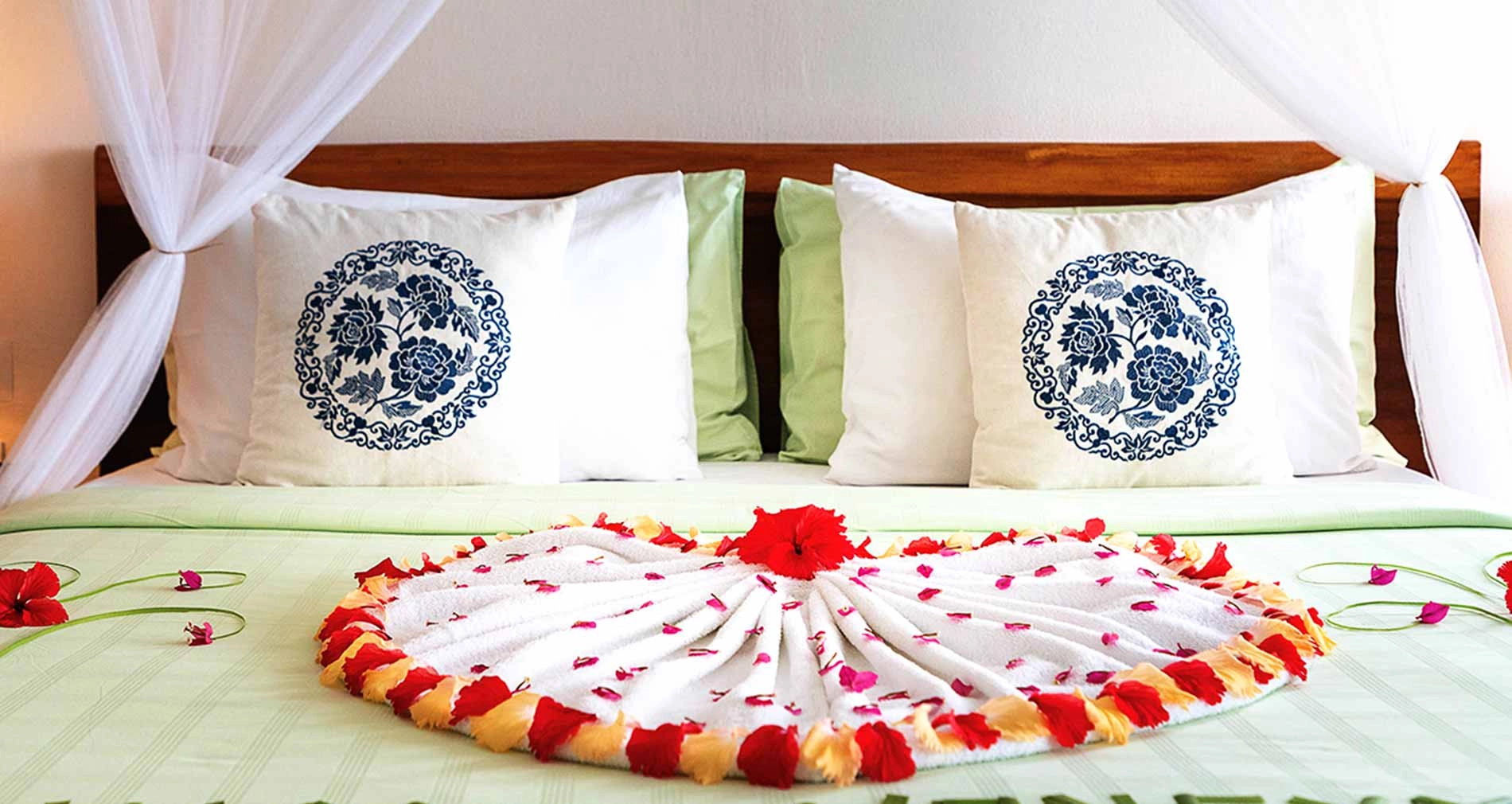 • 와인 1병과 과일 제공 • 허니문 케이크 1회 제공 • 로맨틱 캔들릿 디너 1회 제공 • 스페셜 이브닝 턴 다운 서비스와 침대 장식 1회 제공 • 욕조 장식 1회 제공 • 7박 이상 투숙 시 30분 커플 스파 1회 제공 |