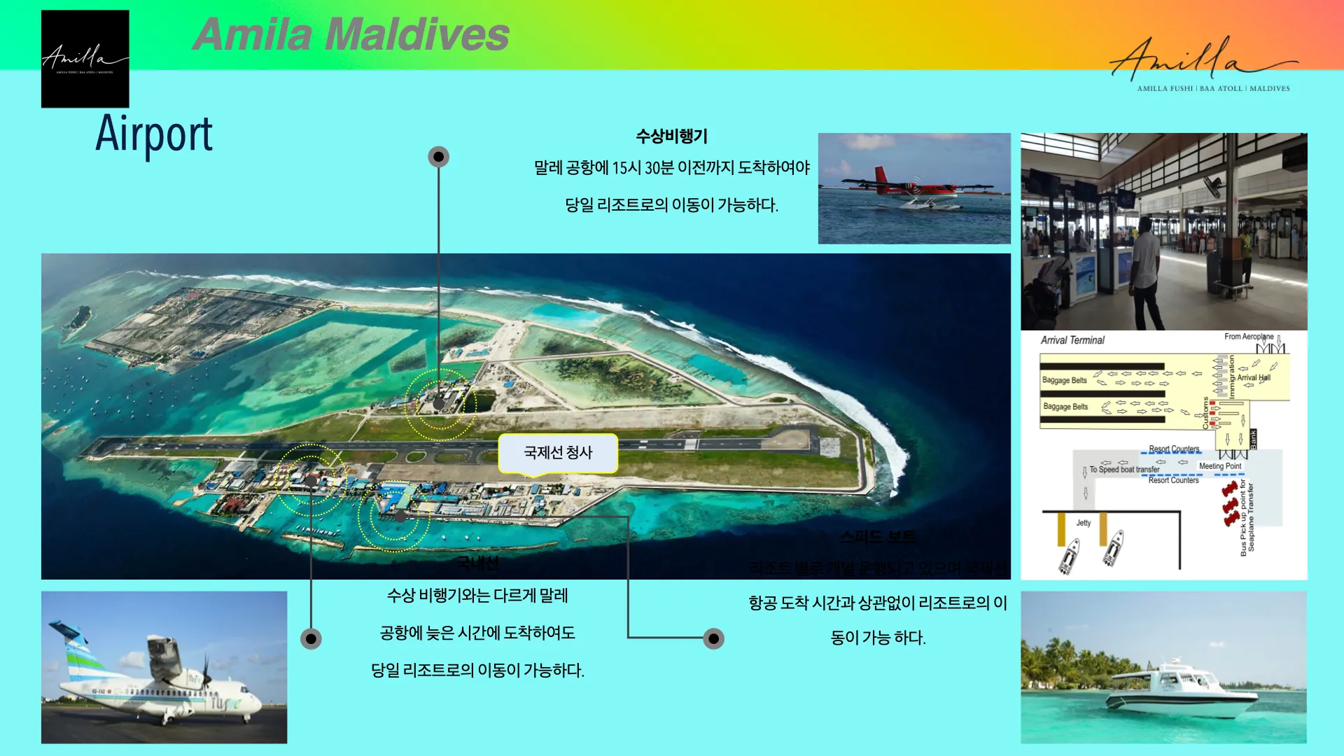 • 몰디브 도착 후 수상비행기 대기 시간 동안 라운지 이용 가능 (스낵, 커피 및 음료, 무료 와이파이 이용 가능)