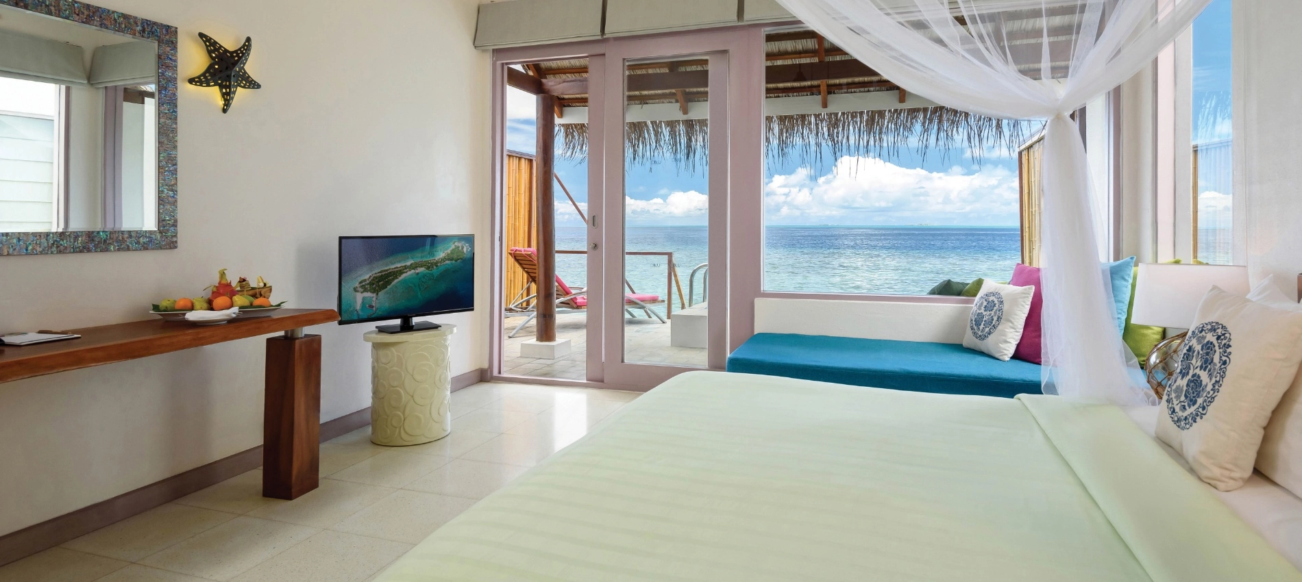 • 몰디브 도착 시 리조트 공항 팀의 미팅 및 샌딩 서비스 제공 • 몰디브 도착 후 수상비행기 대기 시간 동안 라운지 이용 가능 (스낵, 커피 및 음료, 무료 와이파이 이용 가능) • 리조트 도착 시 웰컴 드링크 제공 • 매일 객실에 미네랄 워터 2병 및 티, 커피 무료 제공 • 무료 와이파이 제공 및 스노클링 장비 무료 대여 가능 • 매일 1시간 카약 무료 이용 가능 및 윈드서핑 라이선스 보유자는 매일 1시간 윈드서핑 무료 이용 가능 • 8세 이상 투숙객에게 프리 트라이얼 다이빙 10분 체험 1회 제공 (사전 예약 필수) • 피트니스센터 및 레크리에이션 센터(플레이 스테이션, Wii 게임 등) 무료 이용 가능 • 리조트 일정에 따른 엔터테인먼트 프로그램 제공 • 가이드 라군 스노클링 트립 1회 제공 • 아동은 키즈 클럽 무료 이용 가능 및 매일 11:00~19:00 사이 LA CREMERIA에서 아이스크림 무료 제공 |