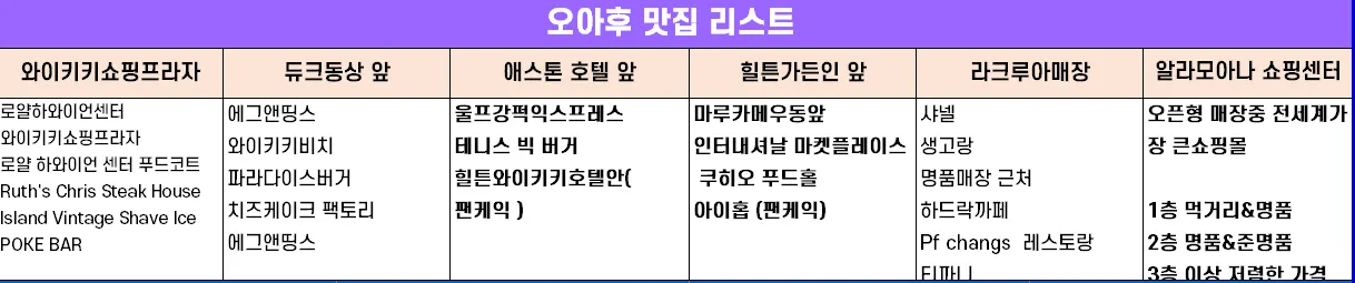 1. 와이키키 쇼핑프라자 (로얄하와이안센터 / 와이키키 등) (시작점 : 면세점이 없어져서 와이키키 쇼핑프라자가 메인이 됨.)