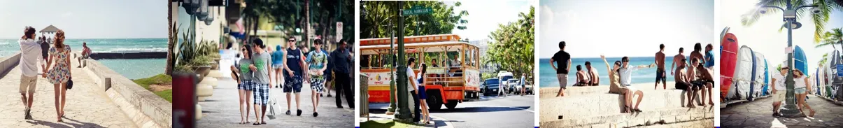 코트야드 메리어트 -> 호텔 라크루아 -> 호쿨라니 호텔 -> 아쿠아 팜스 와이키키 -> 알라 모아나 센터 -헤일코아(힐튼 하와이안)