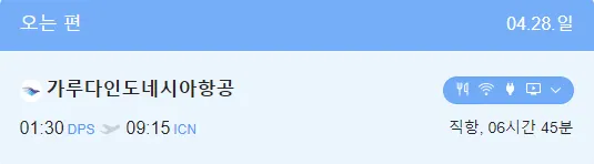 가루다항공편은 인도네시아 국영기 입니다.